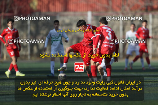تهران, ایران, هفته نوزدهم مرحله دوم لیگ برتر فوتبال نونهالان تهران، فصل ۱۴۰4 پرسپولیس ۰ - ۱ پاس قوامین 11 دی 1404 211 عکس